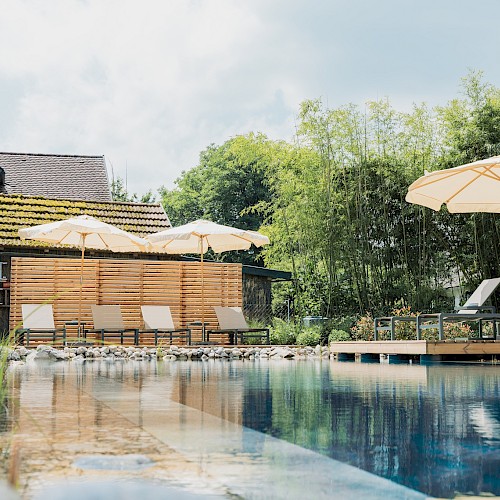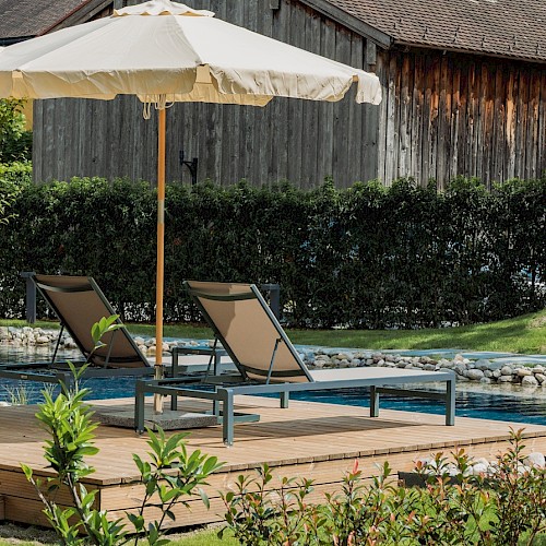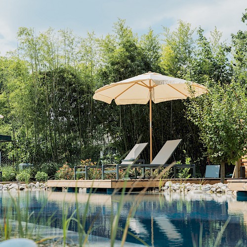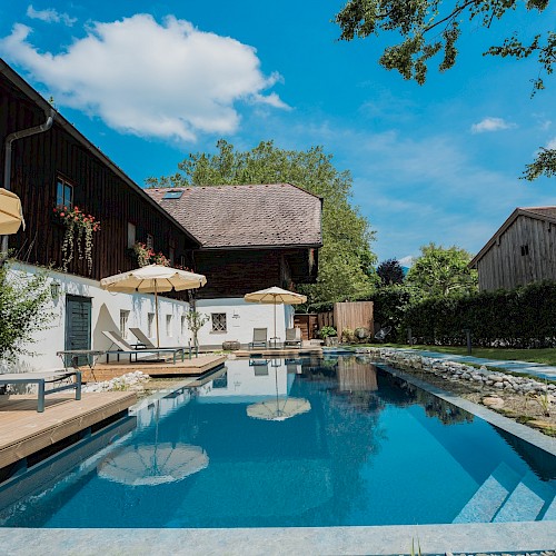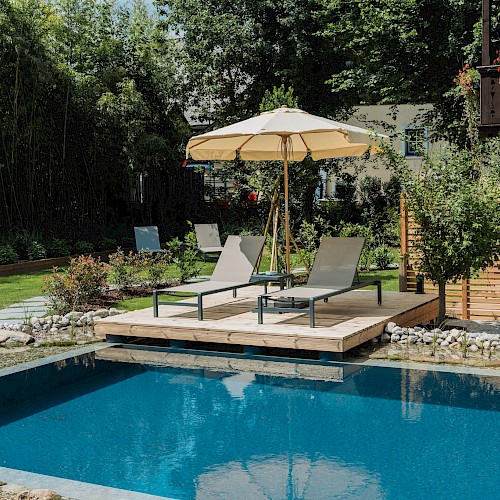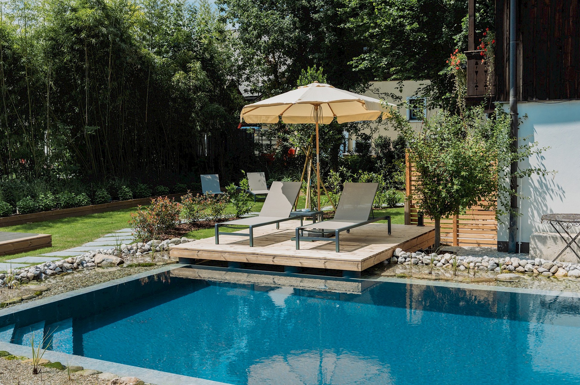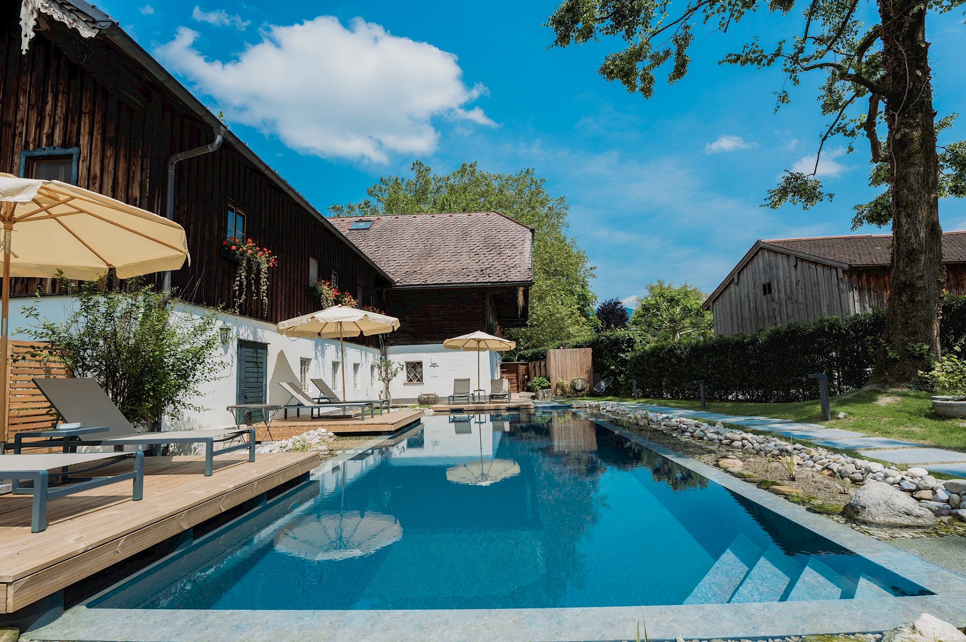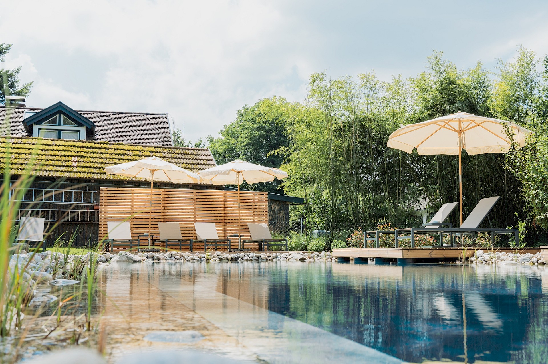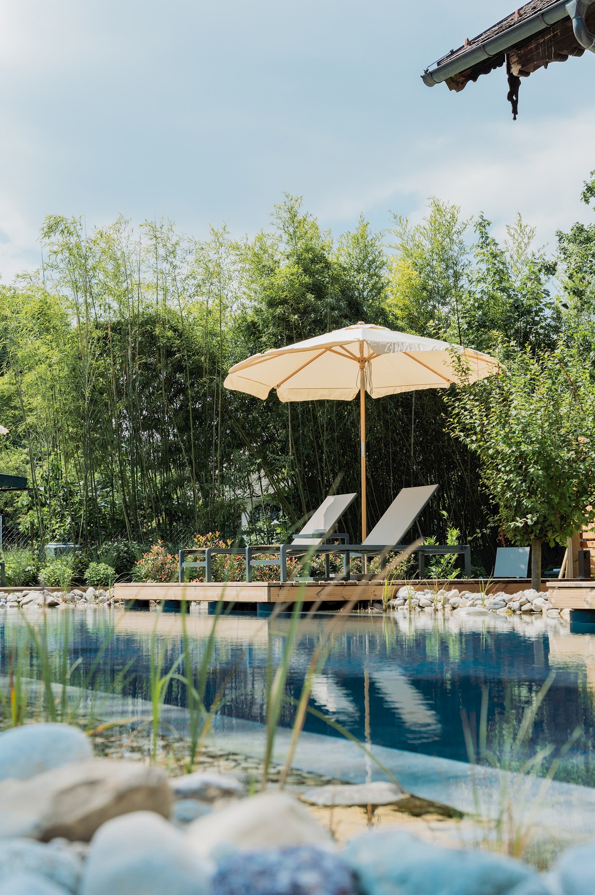 Der Pool bietet unseren Gästen eine ruhige Oase. Ob für ein erfrischendes Bad an einem warmen Sommertag, ein entspanntes Sonnenbad oder einfach zum Verweilen – der Naturpool ist der perfekte Rückzugsort vom Alltag.